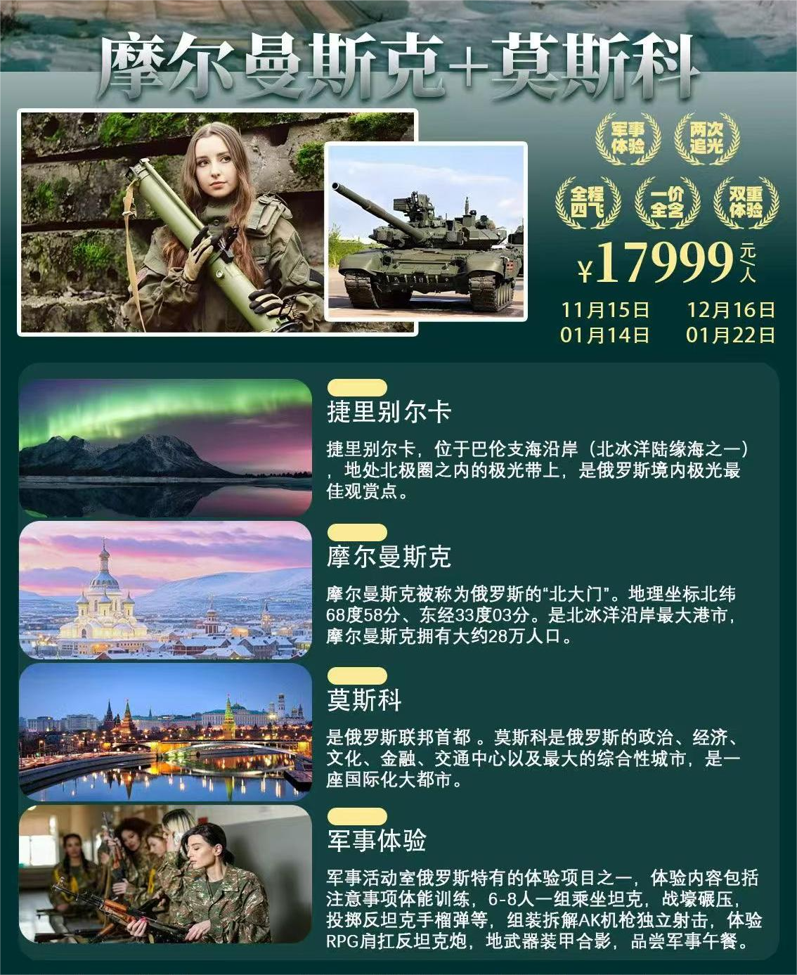 早餐后,前往莫斯科【坦克營(yíng)】。 流程:項(xiàng)目流程: 1、進(jìn)入基地登記注冊(cè) 2、換上專(zhuān)屬迷彩服教練員講述注意事項(xiàng)體能訓(xùn)練 3、6-8人一組乘坐坦克出發(fā),沿途經(jīng)過(guò)陡坡訓(xùn)練地,戰(zhàn)壕碾壓,投擲反坦克手榴彈等(45分鐘左右) 4、組裝拆解AK機(jī)槍獨(dú)立射擊(30發(fā)空包彈) 5、體驗(yàn)RPG肩扛反坦克炮 6、和基地武器裝甲合影 7、品嘗軍事午餐 結(jié)束后返回酒店休息。 |
