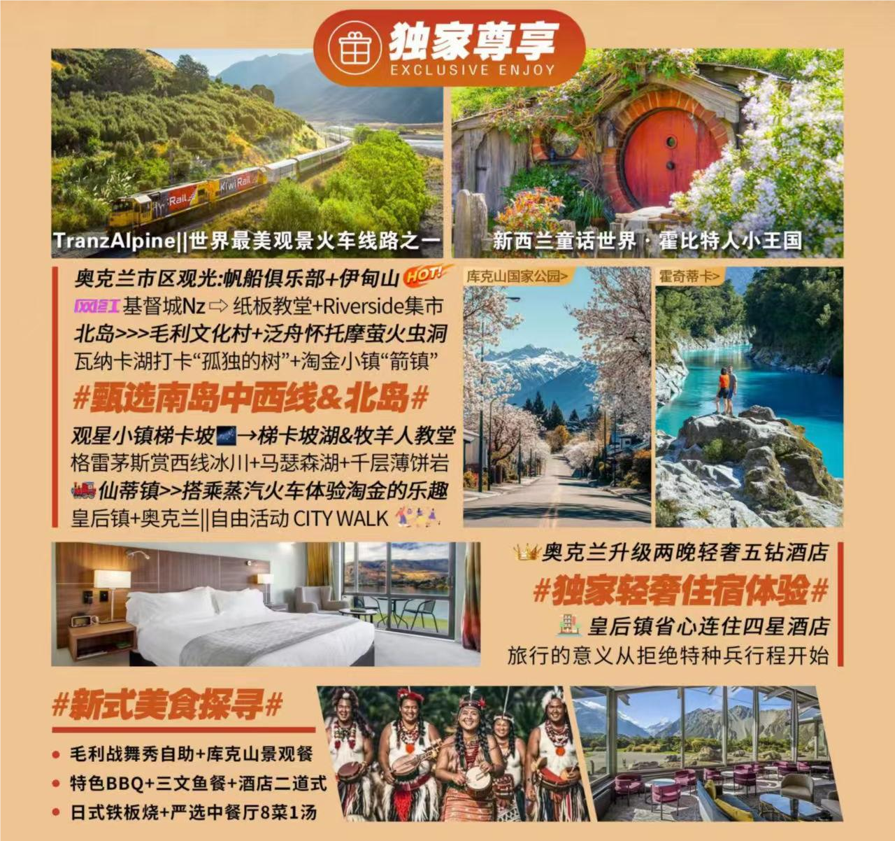 【五湖六鎮(zhèn)-雙火車+2晚5鉆】新西蘭南北島11天行程